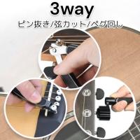 ギター弦交換に便利な3wayストリングカッター。弦カッター・ピン抜き・ペグ回しがこれ一つで完結。軽量でコンパクトな設計なので持ち運びに便利。演奏者やバンドマンの弦交換や緊急修理に最適。カラーはシックなブラック。詳細なサイズは商品画像をご確認ください。
