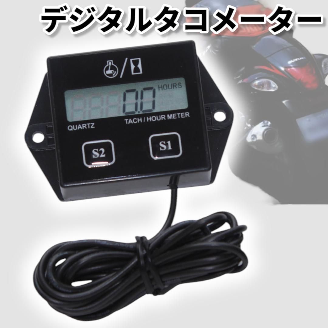 【最新型デジタルタコメーター】バイク 自動車 農機 船外機 建設機械対応 アワーメーター 工具不要 液晶 小型 軽量 2スト4スト兼用
