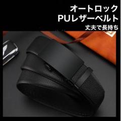 穴なしメンズベルト オートロック式 PUレザー ブラック 黒 ビジネス&カジュアル対応