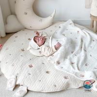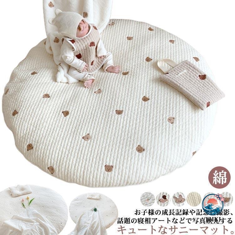 サニーマット ベビー ラグ マット 円形 ごろ寝 寝相アート 月齢フォト マット 綿 赤ちゃん お昼寝マット 刺繍 クマ 花柄 ウサギ リス オリーブ