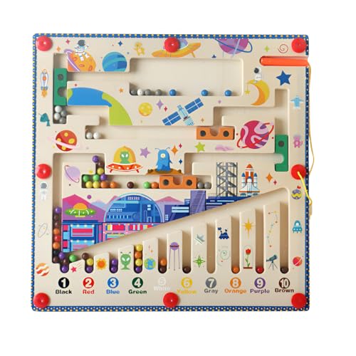 モンテッソーリ玩具 木製磁気迷路ゲーム 知育玩具脳トレ 指先訓練集中力トレーニング 3 7 歳向け 脳トレ 早期開発 マグネットパズル色遊び 数字遊びマッチングゲ