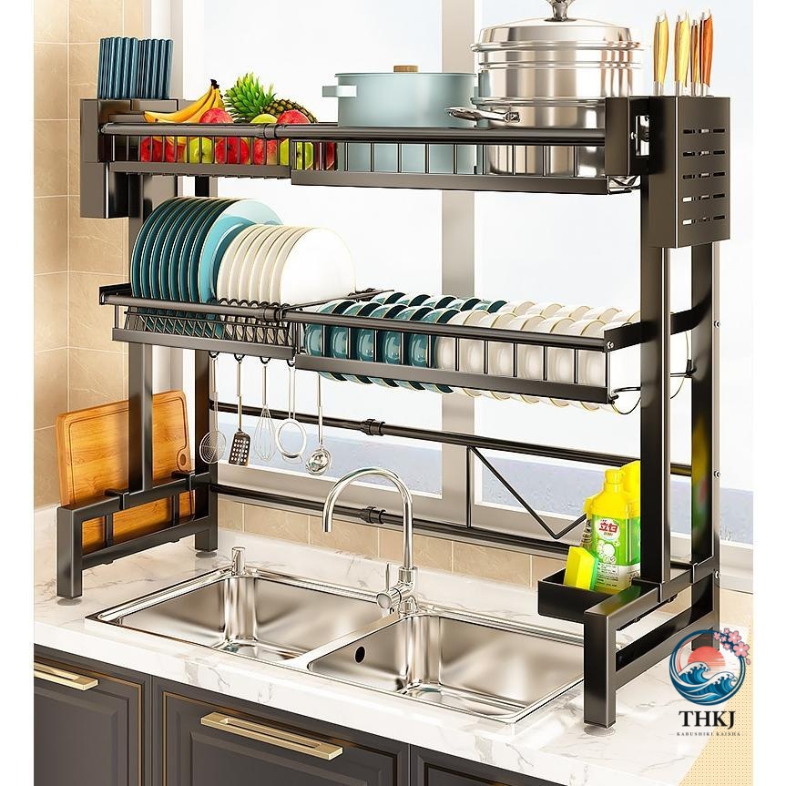 水切りラック スリム 水切りかご 伸縮 シンク上 流し台上 食器ラック 収納ラック キッチンラック 置物ラック ステンレス製 食器棚