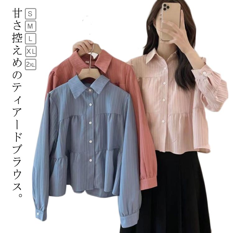 腰周りカバー シャツブラウス 長袖 ブラウス ブラウス Aライン トップス フレア 羽織り 身長アップ 低身長 フリル カジュアルシャツ 20代 30代40代 韓国ファッシ