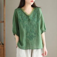 Vネック Tシャツ きれいめ 半袖 ブラウス 春 夏 刺繍 ブラウス ゆったり トップス コットン レディース 体型カバー 綿麻 大きいサイズ 大人 おしゃれ シンプル