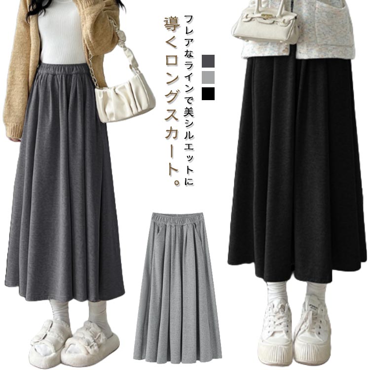 Aライン ボトムス フレアスカート 体型カバー ロングスカート 軽量 ミモレ丈 ウエストゴム オフィス カジュアル 通勤 大きいサイズ フレアスカート 春夏 春服 夏
