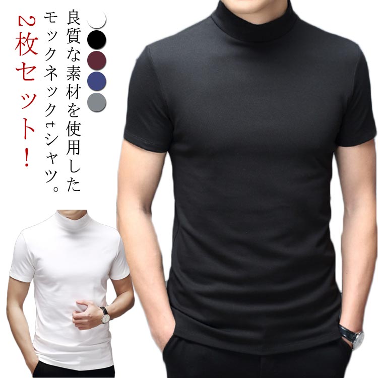 良質な素材を使用したモックネックtシャツ。2枚セット!