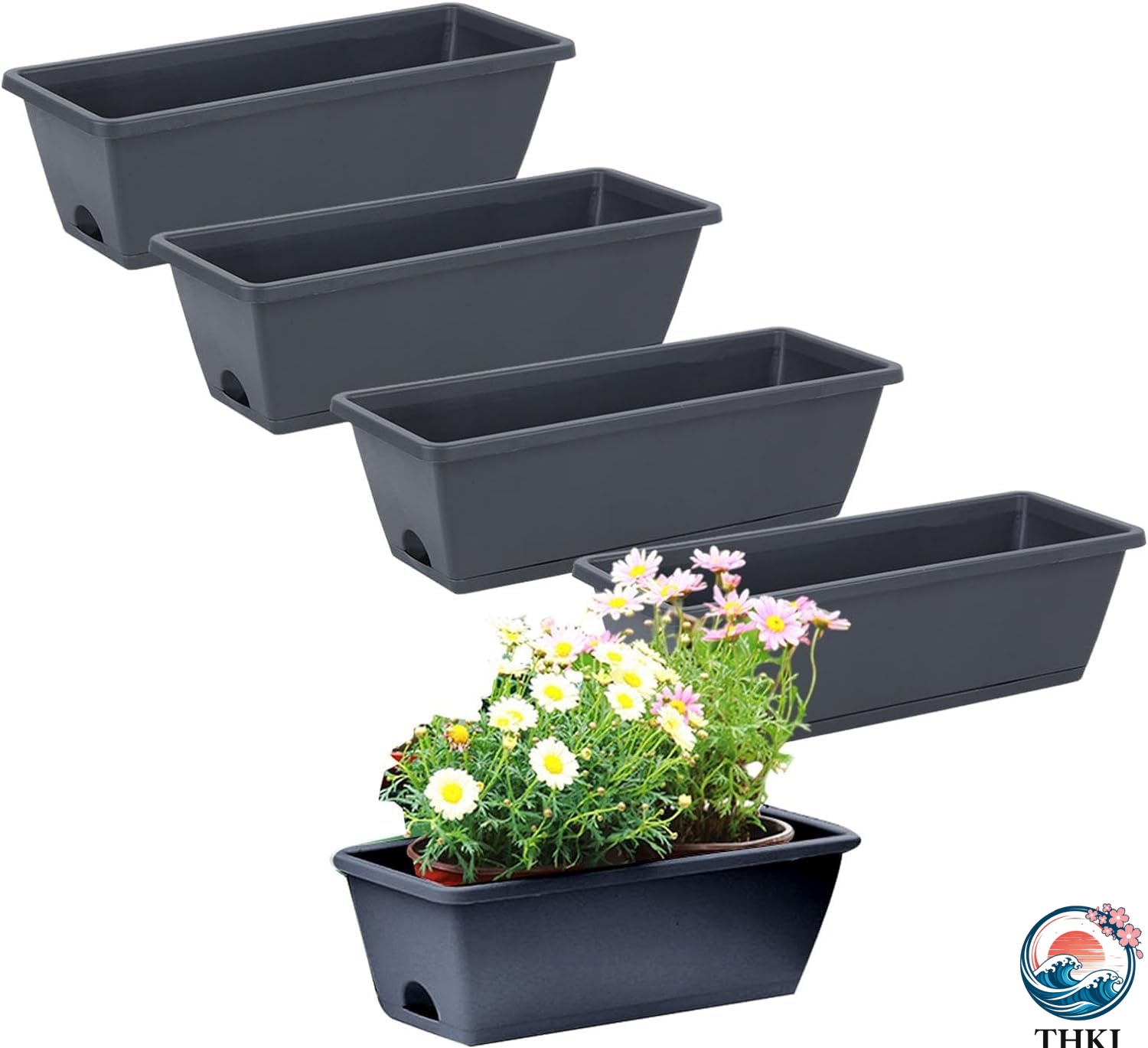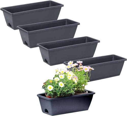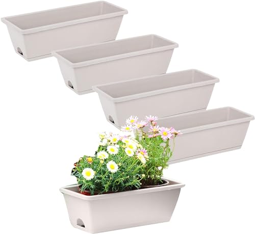窓辺プランター 窓辺プランター 5 個の長方形プランターポット ボックスプランター フラワーウィンドウボックス 排水穴とトレイ付きの長方