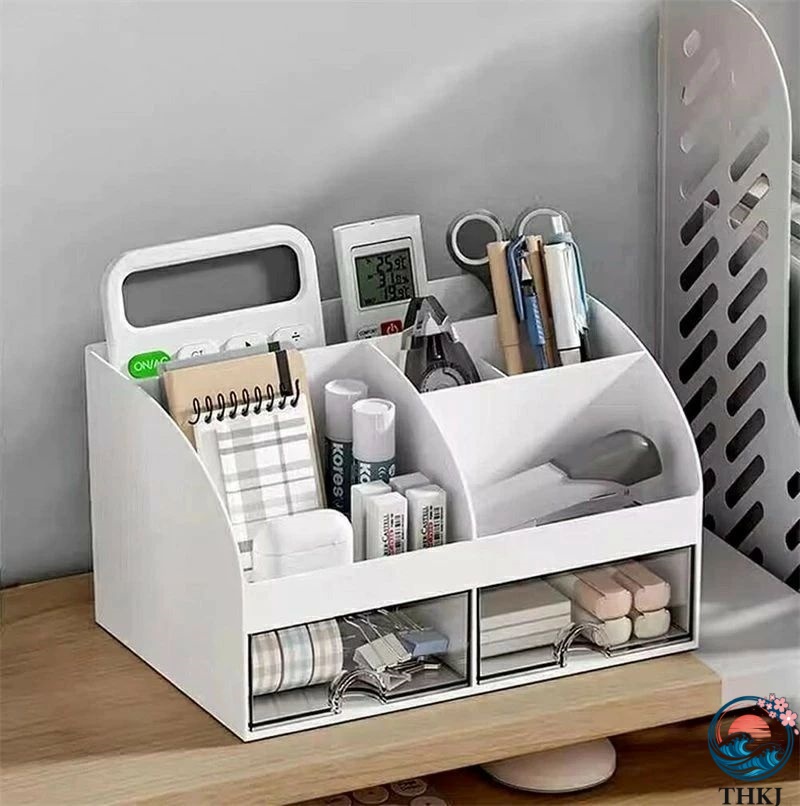 卓上ペンスタンド 大容量ペンホルダー 6格仕切り 引き出し付き 文房具入れ 化粧品 THKJ ジュエリー収納ボ 組立不要 ペン立て ペンスタンド デスク 収納 卓上