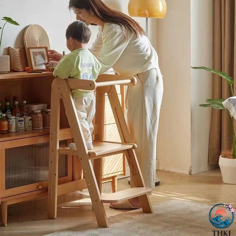 無垢材のキッチンスツール-1歳半から6歳までの幼児に適しています。