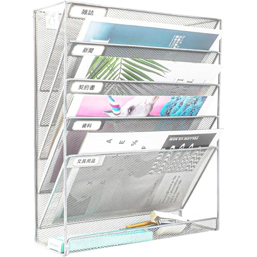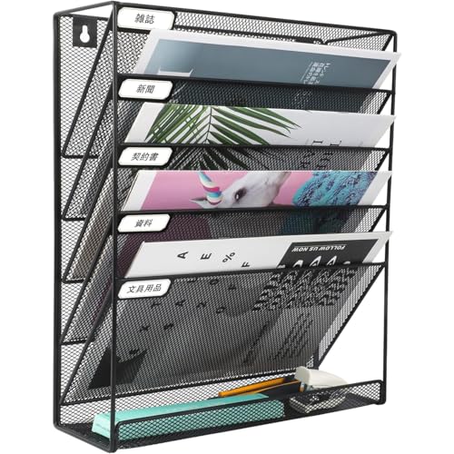 壁掛けファイルラック 6段 卓上収納ラック 卓上収納可能 ファイルラック 書類トレー メッシュメタル レタートレイ 壁掛け書類ラック 組み立て不要 新聞 雑誌 A4