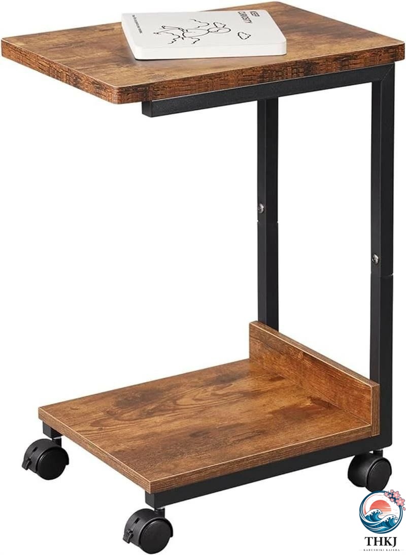 【コ字型テーブル】サイドテーブル キャスター付きはコ字型、ソファやベッドの下のスペースに入れ、隙間に差し込んでも使えます。ソファのサイドテーブルやリビングのサイドテーブルとしても使えます。