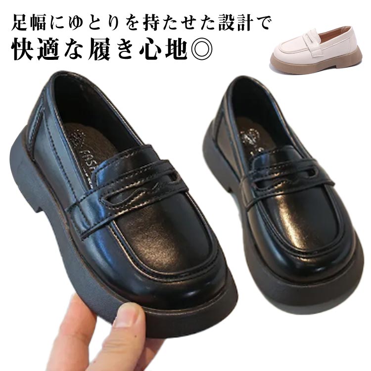 キッズ 学生 オフホワイト ローファー ジュニア 学生靴 革靴 スクール 女子 中学生 靴 通学 合成皮革 16.5-22cm 黒 幅広 入学式 きれいめ フォーマルシューズ 発