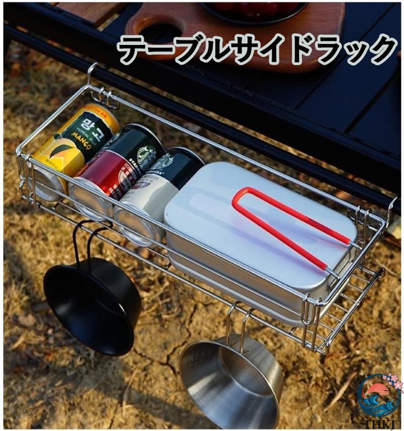 テーブルサイドラック キャンプ 折りたたみ 1秒展開/収納 201ステンレス製 耐荷重 サイドポール対応 軽量 アウトドア・BBQに最適 キャンプ用品 テーブル収納