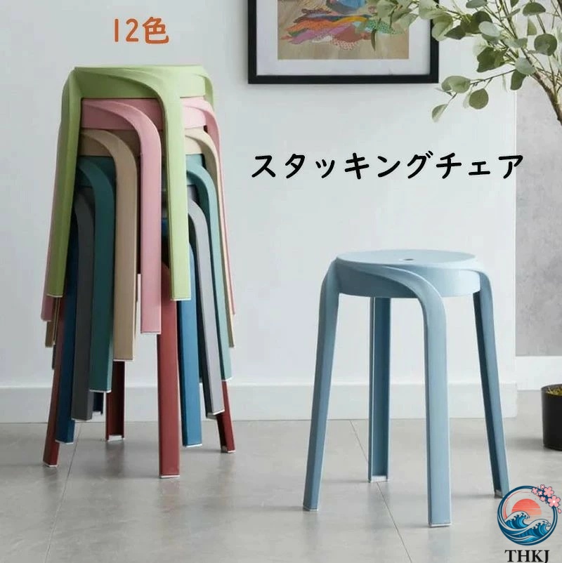 2024 New スタッキングチェア スタッキングスツール 12色 屋台イス 椅子 折りたたみチェア スツール プラスチックスツール ラウンドベンチ シンプル リビングル