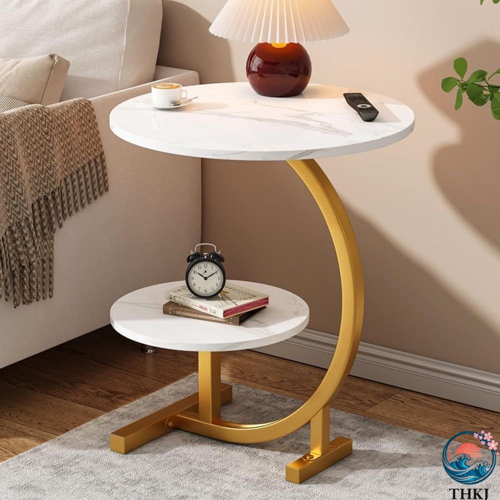 サイドテーブル ソファ ベッドサイドテーブル C字型 2段 ミニ 円形 小型 軽量 小物置き 丸型 可移動 コーヒーテーブル アパート ベッドサイド リビング ベッドル