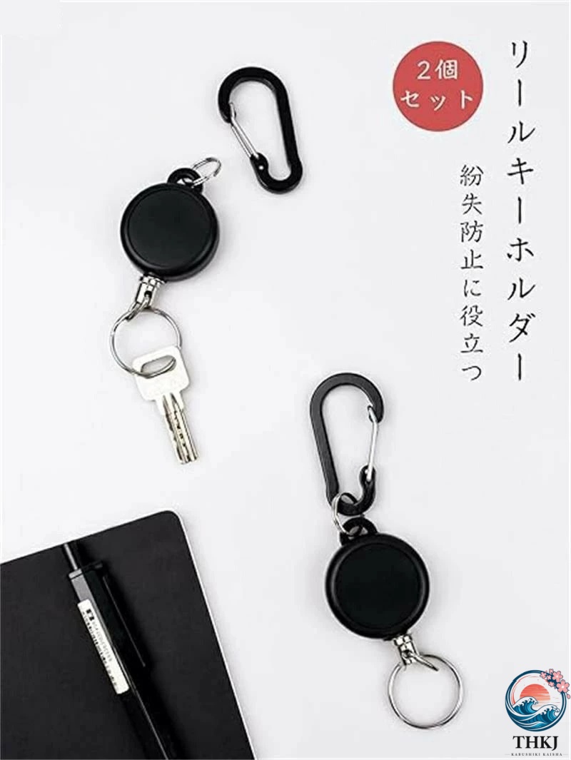 【製品仕様】スチールワイヤーが内蔵されており、摩擦に強く丈夫なリールキーホルダーです。材質:ABS+亜鉛合金。重量:約。携帯性抜群。本体:直径3.5cm、厚み1.2cm。2個セット、予備があるので安心です。