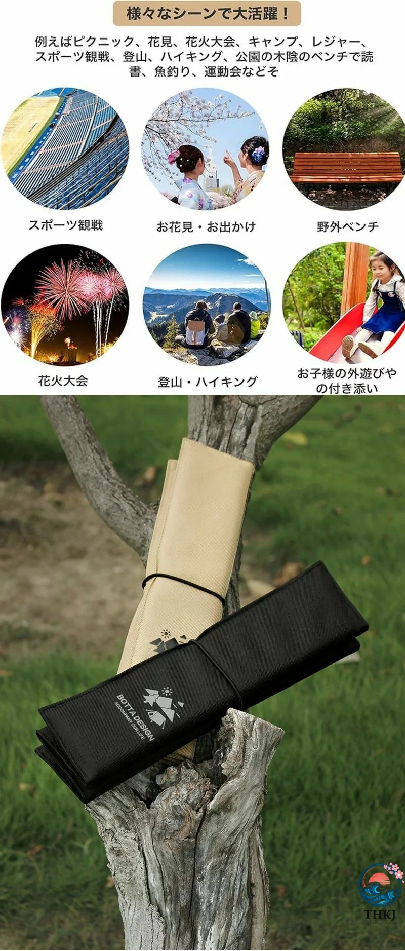 【快適性の向上!/湿気も冷熱も遮断】約1cm厚みのある折りたたみクッションなので。中間充填薄いながらもしっかりと体重を受け止めてくれます、しっかりとしたクッションをご提供します。椅子や地面に敷くだけで、長時間座ってもお尻が痛くなりにくい、服を汚さず。下からの冷えや湿気や熱もカット。座り心地の向上、さまざまなシーンで大活躍まちがいなし!