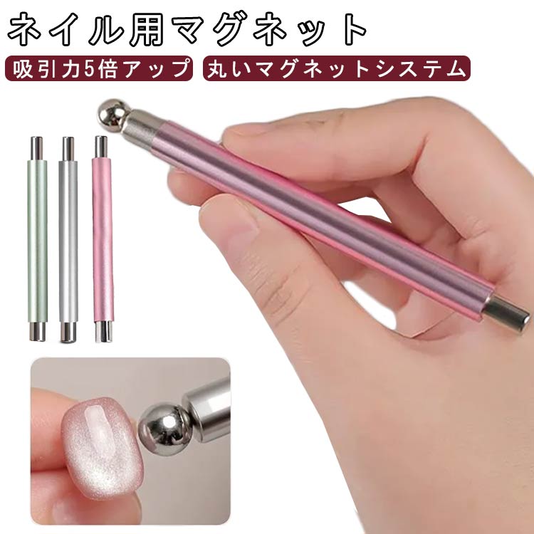 強力 磁石 スティックマグネット ネイル用マグネット 初心者でも使える コンパクト ネイル用マグネット 2本セット スチールボール付き ネイルツール 丸型 ネイル
