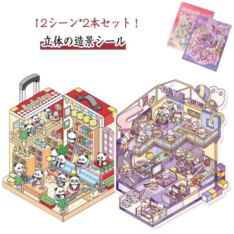 女の子 ハウスステッカー 漫画シーンステッカー 初心者 2本セット 12シーン おもちゃ シール3dステッカー 可愛い シーンシール シーンシール 造形 シール 紙ドー