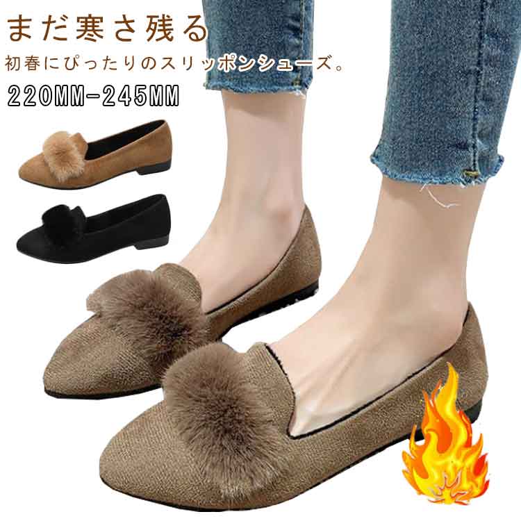 ポインテッドトゥ 春 冬 秋 ポインテッドトゥ ファー付き パンプス レディース 歩きやすい 美脚 通勤 パンプス カジュアルシューズ きれいめ スリッポンシューズ