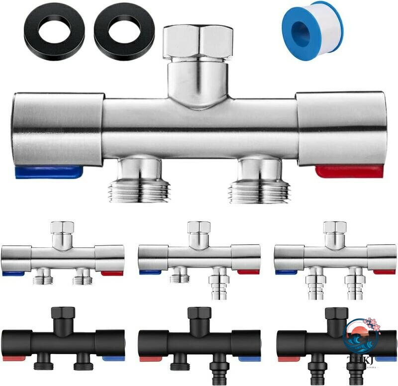 蛇口 二股 分岐 水道 分岐栓 キッチン 分岐バルブ 水栓 洗濯機 分岐蛇口 ステンレス 二口水栓 表面処理 耐食性 交換部品 シールテープ付き ベランダ ガーデン 洗