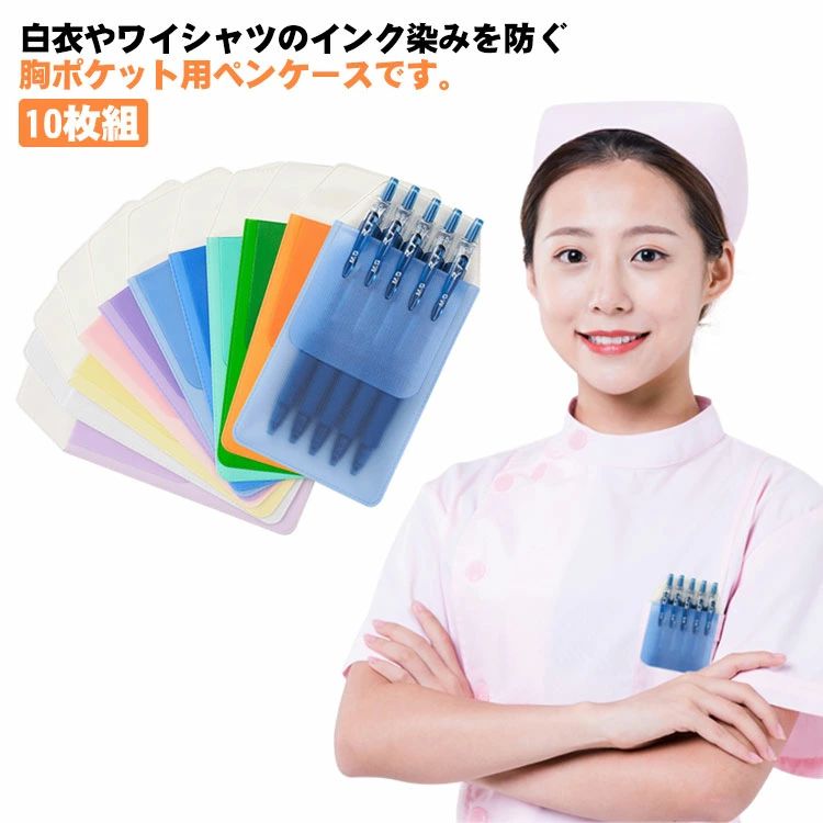 胸ポケット 汚れ防止 10枚組 ペンケース 看護師 ポケットガード 薬剤師 薬局 保育士 インク汚れ 白衣 ナース ペン入れ 10枚組 防水 ペン汚れ