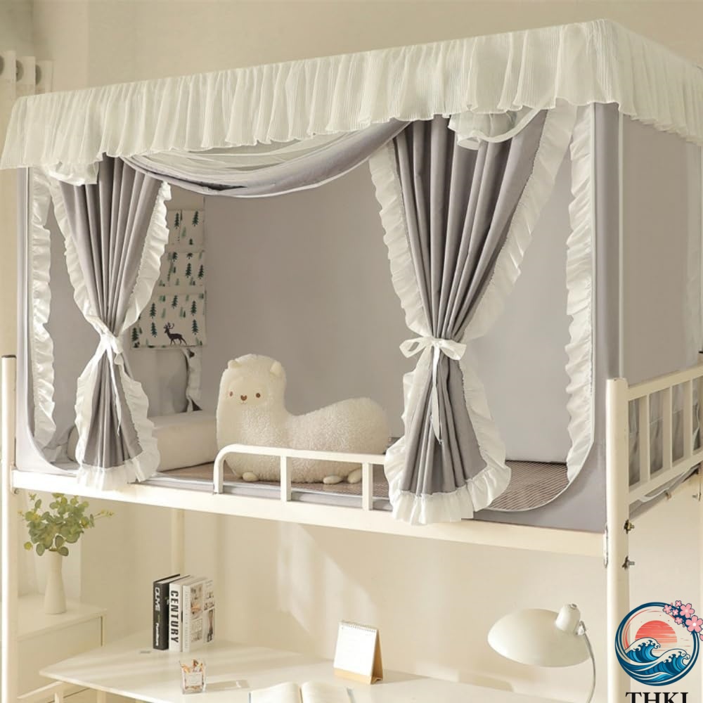 蚊帳一人用 おしゃれベッド用 学生寮 上段と下段蚊帳 室内テント式シングル底付きトップ防塵遮光布ベッドカーテン二段ベッド学生寮の場合 防塵 多機能 取り付け