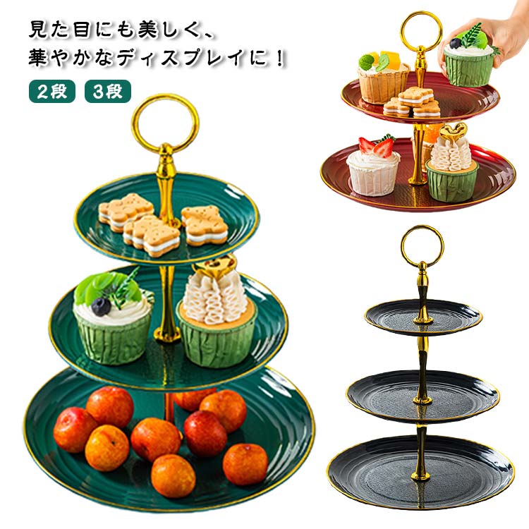 ケーキ 独立 3段 2段 アフタヌーンティー 忘年会 スイーツラック スタンド ディスプレイ パーティー 装飾 便利 3層 ケーキスタンド 皿付き ケーキスタンド カッ