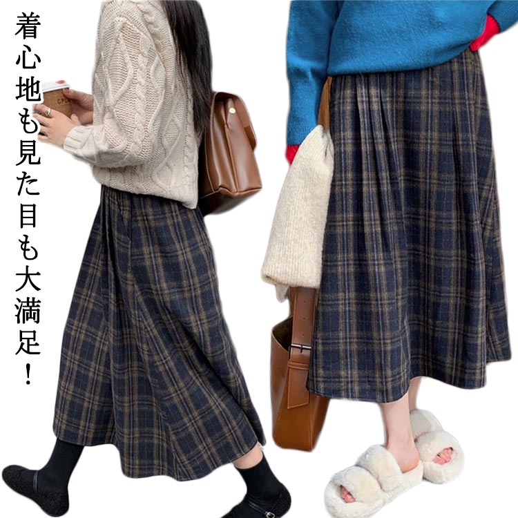 チェック柄 スカート チェック柄スカート 秋 スカート フレアスカート ウエストゴム Aライン レディース ゆったり お洒落 きれいめ ボトムス 着回し デート ガー