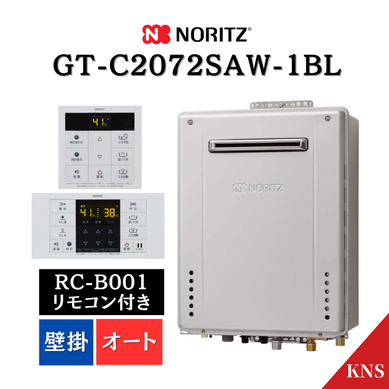 1月製造品 ノーリツ ガスふろ給湯器 GT-C2072SAW-1 BL + RC-B001 リモコン付 20号 20A 壁掛 オート エコジョーズ 都市ガス LPG GT-C2062SAWX 後継機種