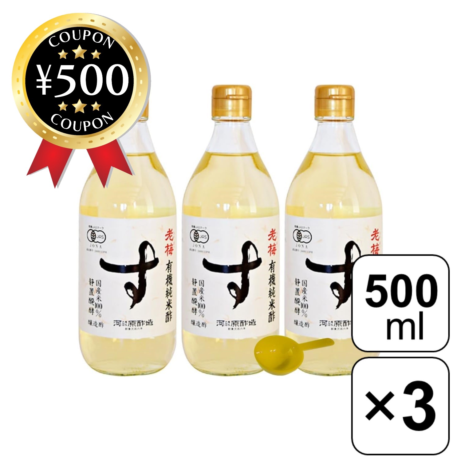 河原酢造 有機純米酢 老梅 500ml×3本 国内産 有機栽培米 お酢 酢 米酢 米 お米 調味料 まろやか フルーティ 酢の物