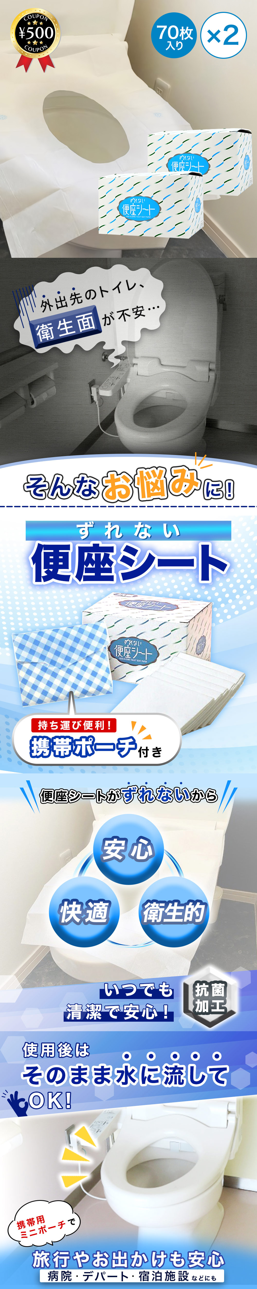 便座シート 使い捨て 70枚入×2個セット ずれない便座シート 衛生 公共トイレ 外出 海外旅行 持ち運び 感染対策 抗菌加工済 富士パックス
