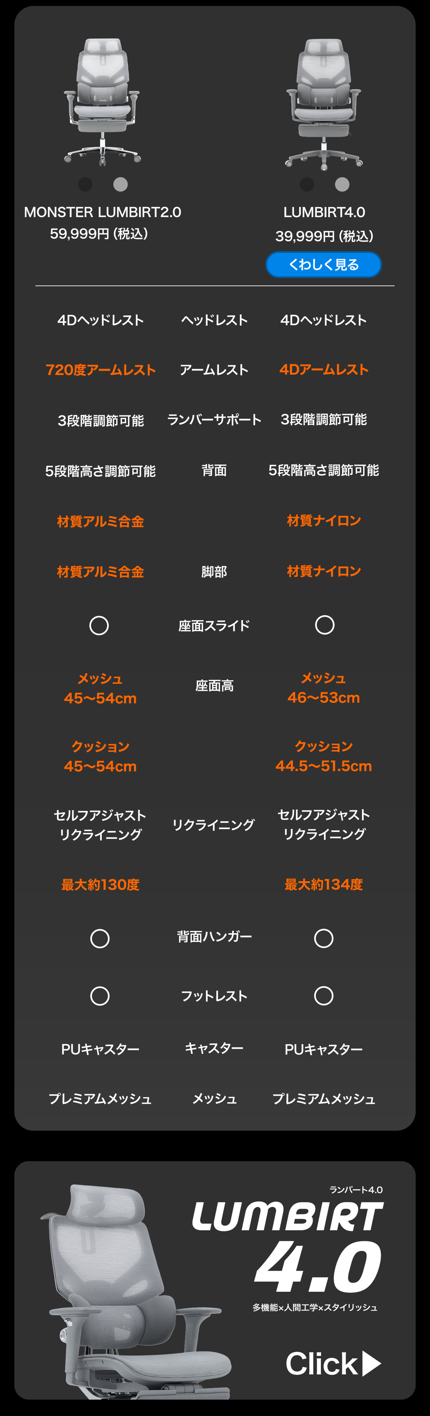 ・商品説明文 MONSTER LUMBIRTが2.0にアップデートしました。 【人間工学 に基づいた背面設計】 腰を包み込む形状が特徴の3ゾーンランバーサポートが腰を快適に支えます。 3ゾーンランバーサポートは、 [1.可動域:大]、[2.可動域:小]、[3.可動域:固定]と3段階調節可能になっております。 また背面5段階高さ調節が出来ることにより、お好みの位置で快適に腰を支えます。 【充実した多機能設計】 1)「変幻自在の720度アームレスト」昇降7.5cm、前後スライド幅6cm、角度調節1:360度(19段階)、角度調節2:360度(21段階) 肘をお好みの位置で快適に支えます。 2)「4Dヘッドレスト」角度調節1:調節幅100度、角度調節2:調節幅90度、高さ調節7.5cm可能、前後スライド2.5cm。 3)夏場も蒸れにくい全身メッシュ構造(フットレスト除く)。 4)静かで滑らかな滑りのPUキャスター搭載。 5)座面スライド機能搭載。 【多機能な上に快適】 1)リクライニング最大130度。4つの角度で固定可能。 2)収納式フットレストを搭載。仕事の合間、休憩時に快適に仮眠いただけます。 【日本ブランド&1年保証+2年延長保証】 日本人サポート窓口が丁寧に対応させていただきます。 万が一不具合が生じた場合、1年以内であれば無料で部品交換を承ります。 2年延長保証サービス(税込1,000円)のご購入で合計3年間の保証となります。 【商品仕様】 ■カラー:黒(BLACK)/グレー(GRAY) ■寸法:幅65cm × 奥行76cm (脚部除く) × 高さ108〜141cm ■重量:25kg ■座面高:(メッシュ)約45〜54cm(クッション)約45〜54cm ■耐荷重:125kg ■ブランド:EastForce(イーストフォース) ■メーカー・販売元:株式会社K&I |