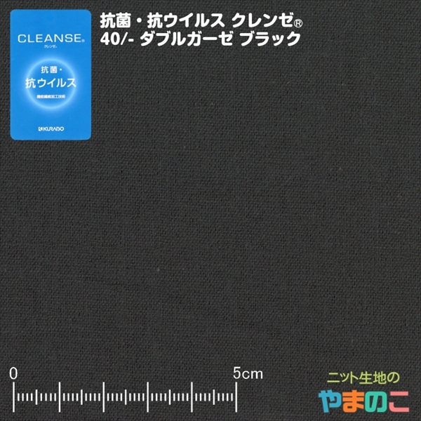 イータック固定 抗菌・抗ウイルス機能繊維加工技術クレンゼ 40/-ダブルガーゼ ブラック 106cm巾「手作りマスク向け」