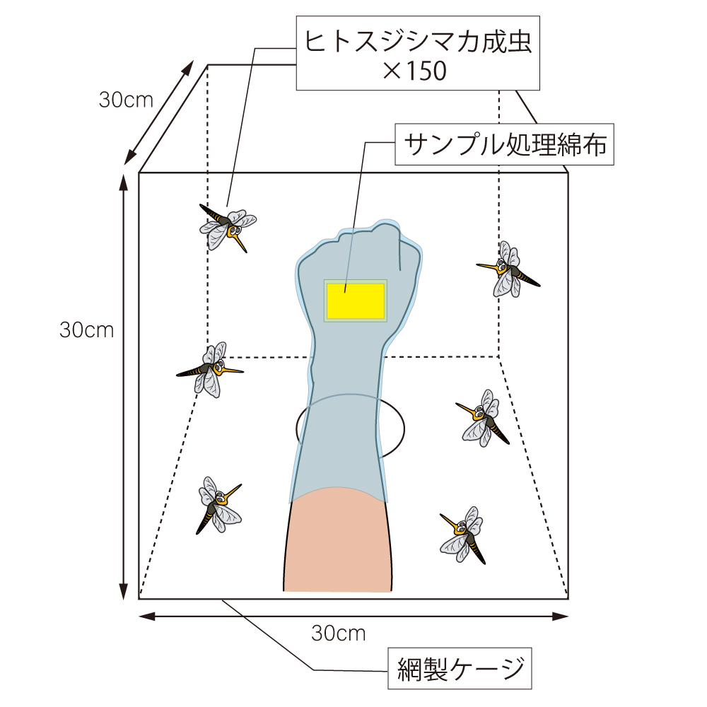 時間内に試験用検体の上に飛来し、吸血した個体数を計数した。