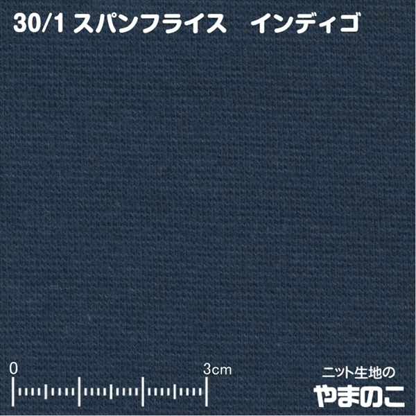 ニット生地 30/-スパンフライス インディゴ 「衿、袖口など付属向けストレッチ素材」