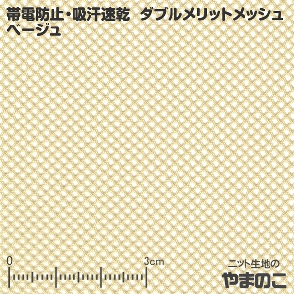 ニット生地 帯電防止・吸汗速乾 ダブルメリットメッシュ ベージュ「裏地向け、グッズ向け」