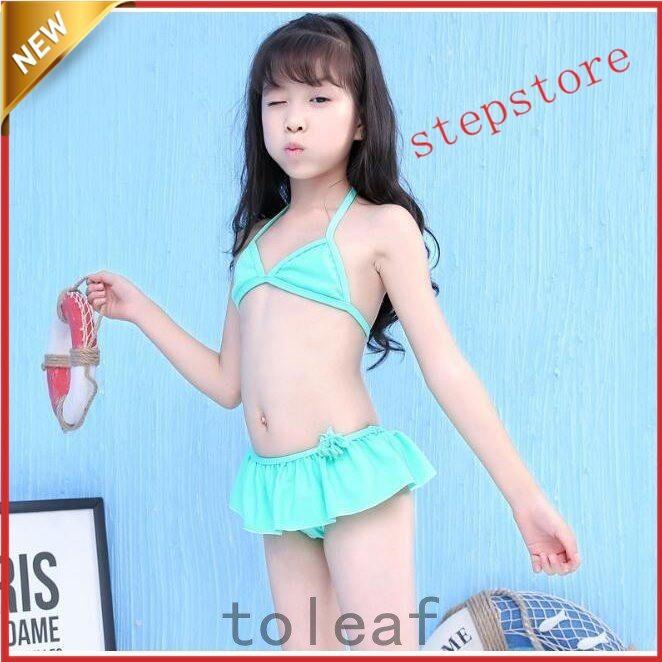 子供水着 ビキニ 2点セット 女の子 ガールズ 三角ブラ 可愛い プール 海 子供服 90-100、110-120
