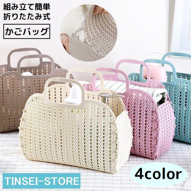 かごバッグ バスケット プラスチック メッシュ 折りたたみ 軽量 コンパクト 小物収納 お風呂 銭湯 温泉 スパ 手提げ 大容量