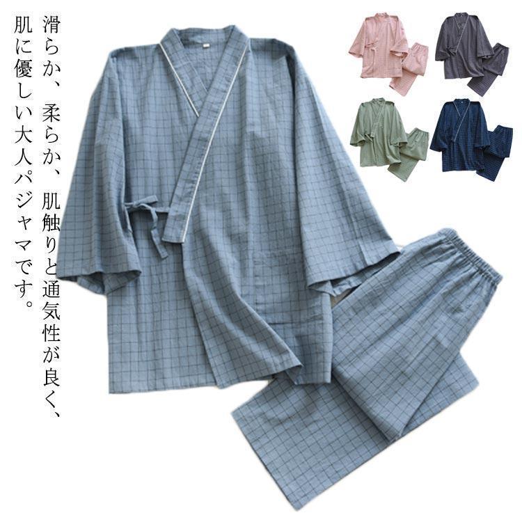 甚平 パジャマ レディース メンズ 七分袖 チェック柄 夏 ルームウェア スウェット 綿100 コットン パジャマ 上下セット お揃いパジャマ ペアル