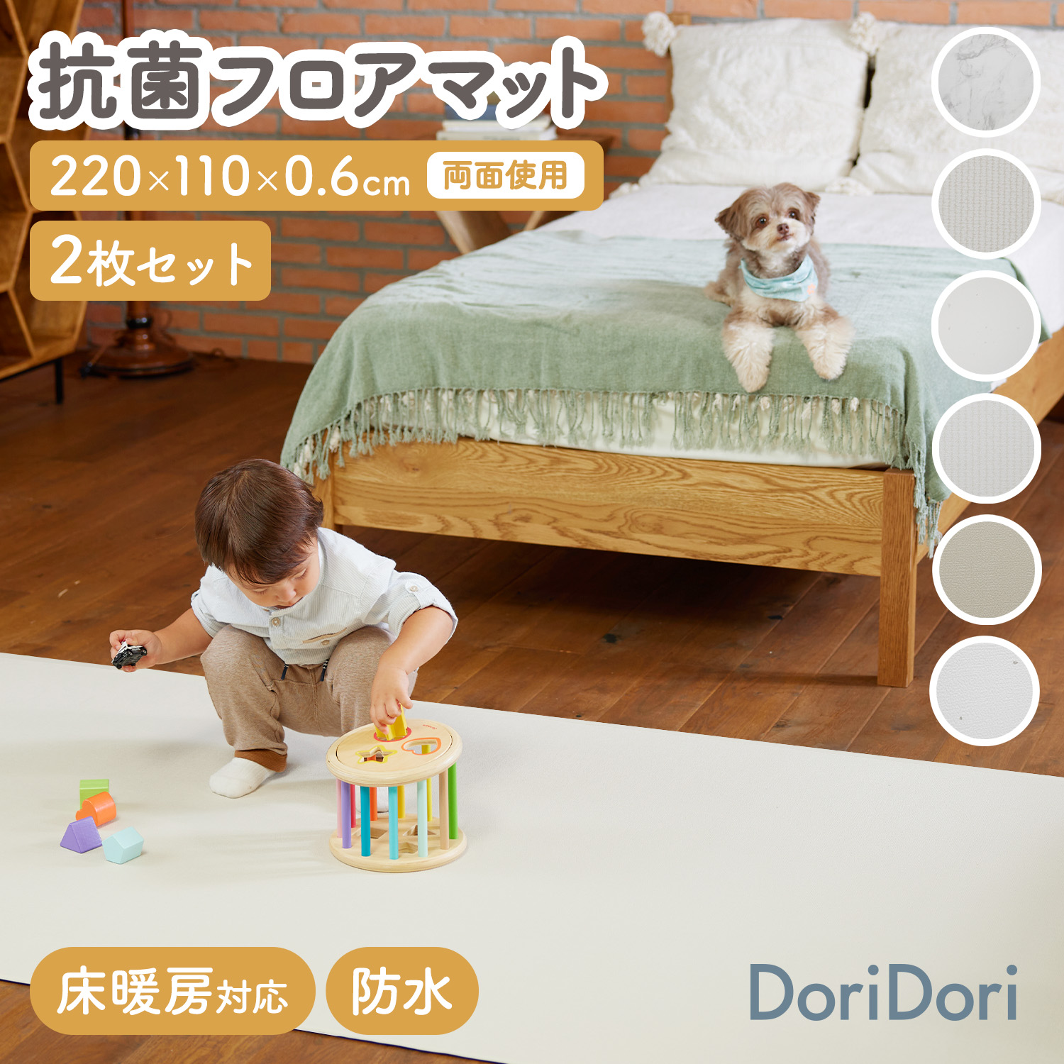 また、側面まで100%防水でお手入れも簡単♪床との段差が少ないので、掃除機楽々・お掃除ロボもOK!リバーシブルで使えるので、マットも長持ちし模様替えにも◎