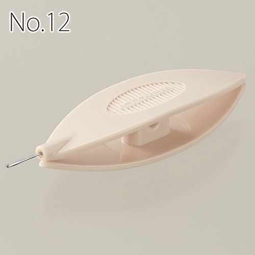 先端に付いているかぎ針はNo.12(0.60mm)で、細めのレース糸向きです。使用するレース糸に合わせてシャトルをお選び下さい。