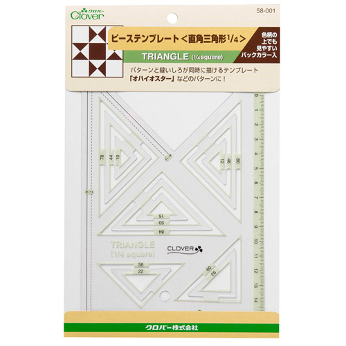 ピースドキルトのお手伝い。お好きなサイズのパターンが作れます。布や紙などの作図をしたいところにピーステンプレートを置いて、必要なパターンサイズをなぞります。ワンパッチなどの作品作りに便利です。