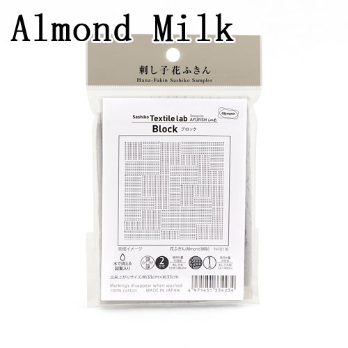 オリムパス 刺し子 花ふきん 布パック Sashiko Textile lab Block(ブロック)AlmondMilk (糸別売り)