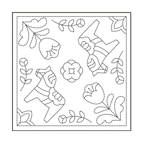 オリムパス 刺し子 北欧モチーフの花ふきん 布パック ダーラナホース 白(糸別売り)
