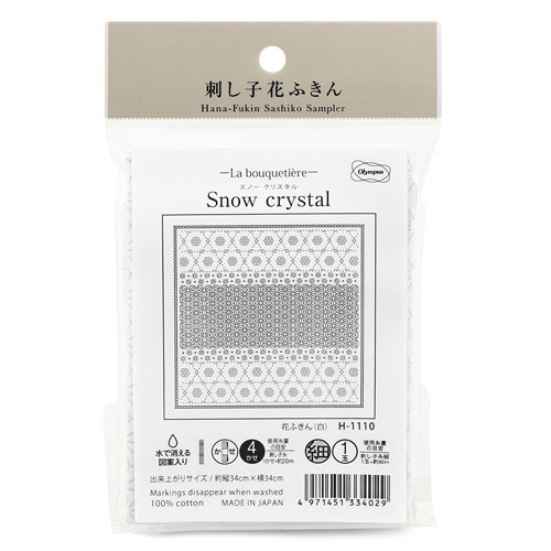 オリムパス 刺し子 花ふきん 布パック Snow crystal(スノークリスタル) 白(糸別売り)