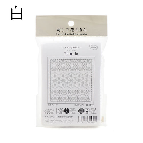 オリムパス 刺し子 花ふきん 布パック Petunia(ペチュニア) 白(糸別売り)