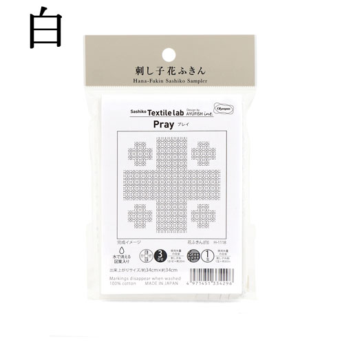 オリムパス 刺し子 花ふきん 布パック Sashiko Textile lab Pray(プレイ)白(糸別売り)