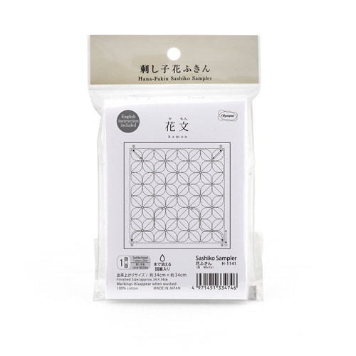 オリムパス 刺し子 花ふきん 布パック 花文 kamon 白(糸別売り)