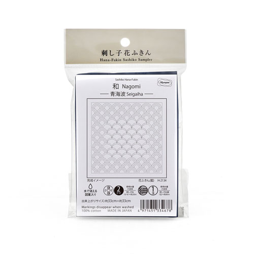 オリムパス 刺し子 花ふきん 布パック 和 Nagomi 青海波 Seigaiha 藍(糸別売り)